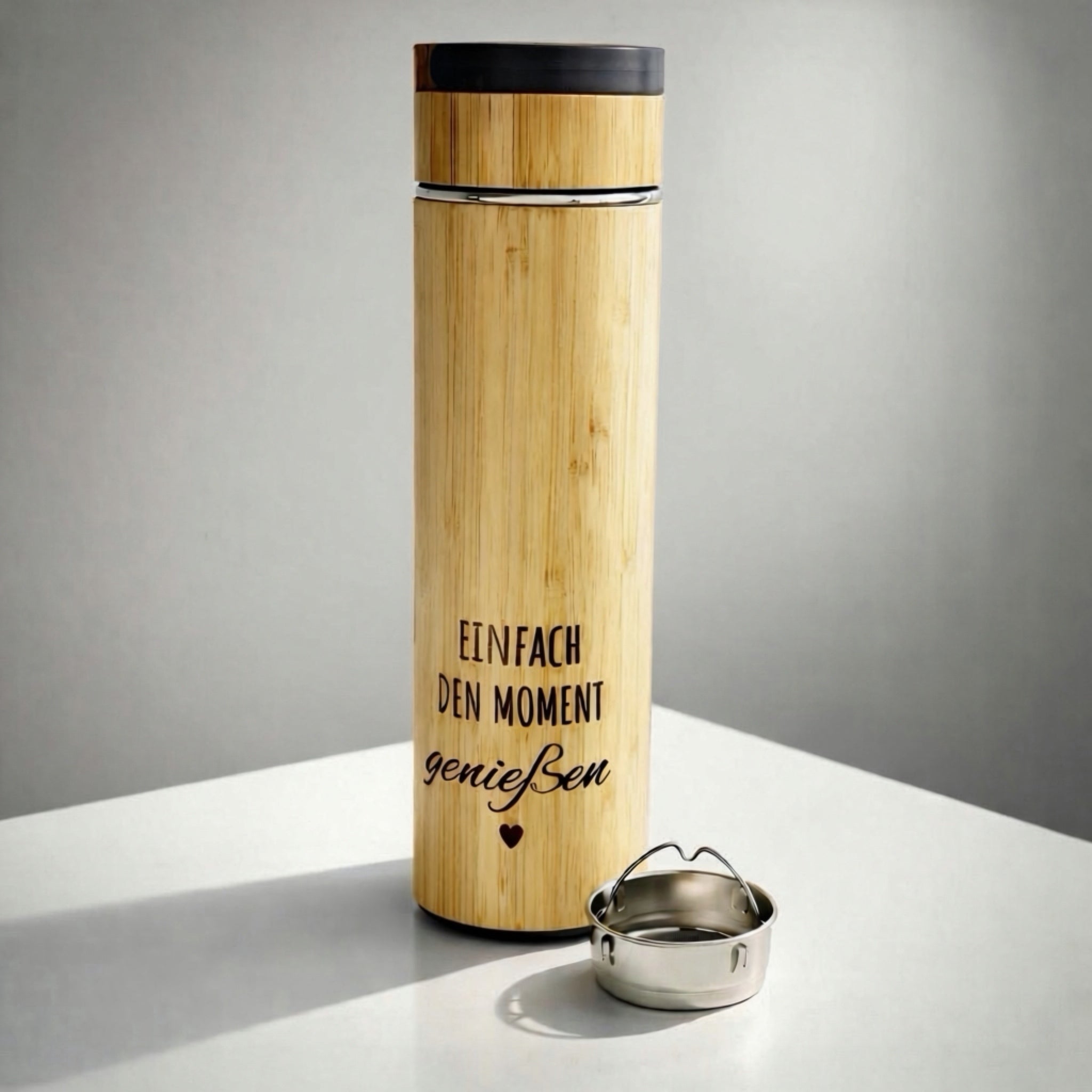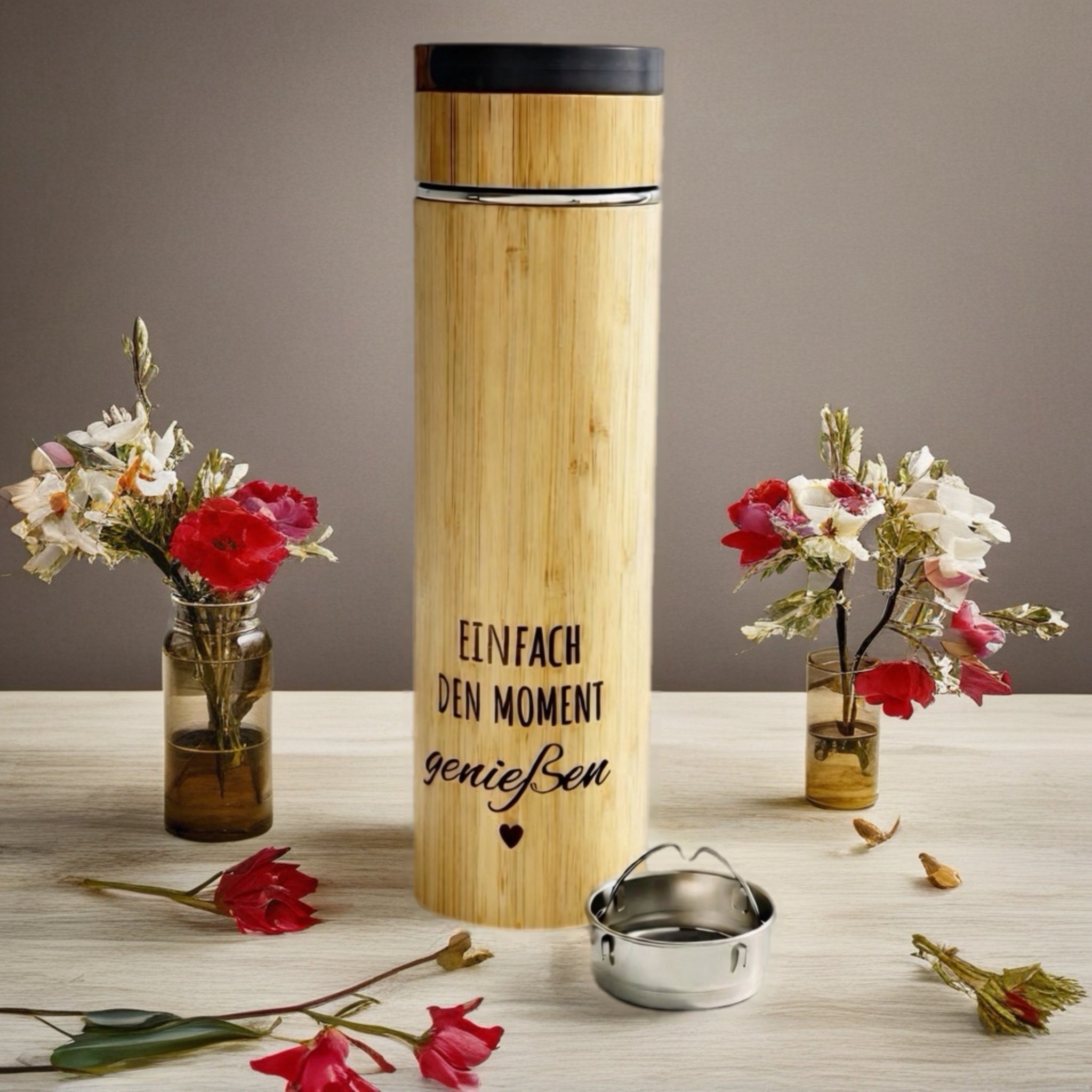 Bambus Thermoflasche mit Teesieb & Wunschgravur