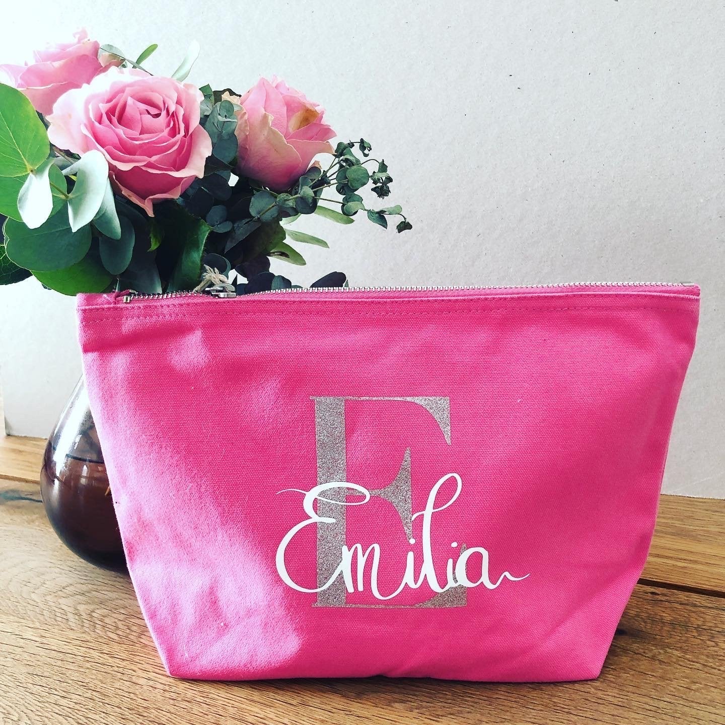 Kosmetiktasche aus Bio-Baumwolle personalisiert mit Namen