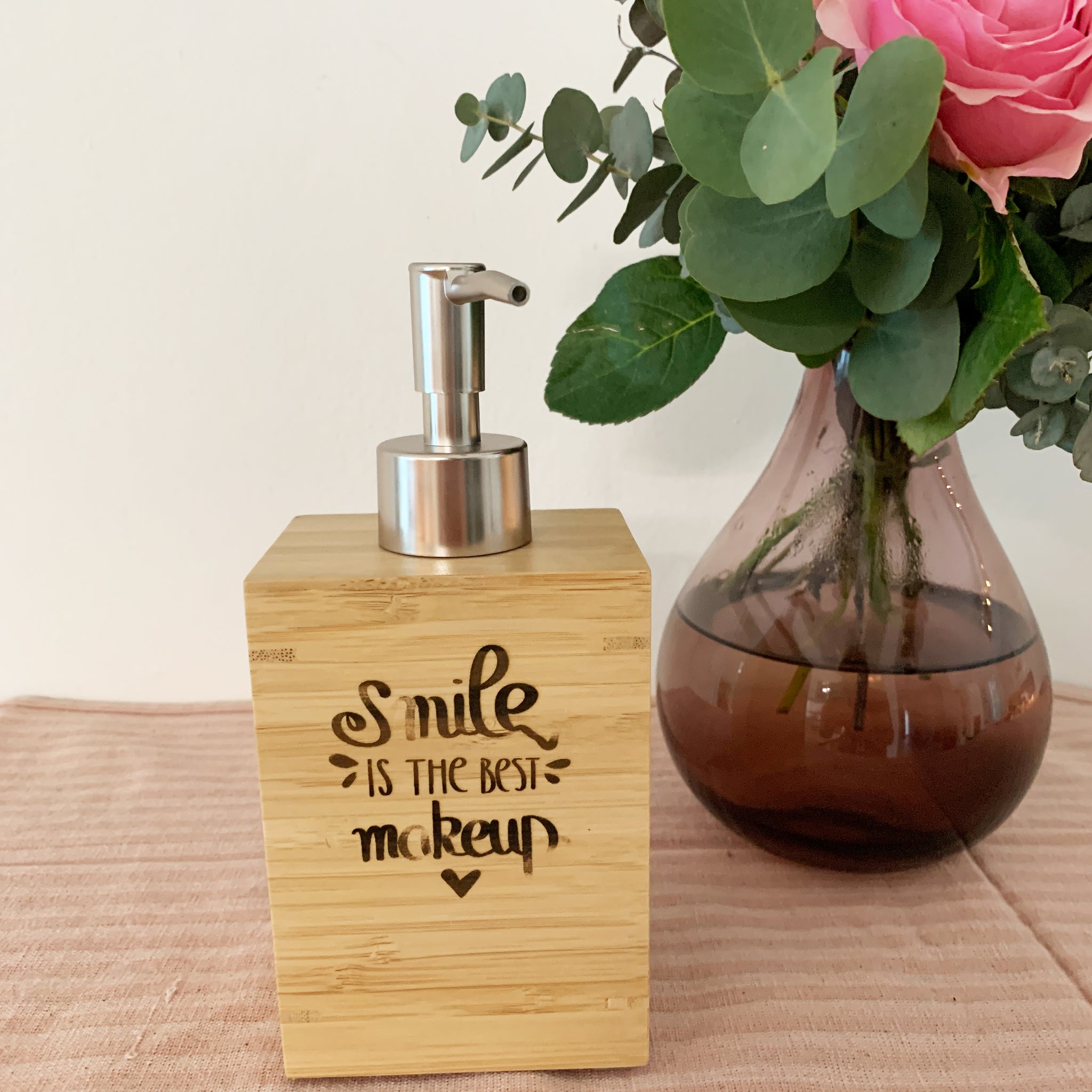 Ein lasergravierter Seifenspender ist in jedem Badezimmer oder WC ein echter Hingucker. Diese besondere Geschenkidee ist super praktisch und das Naturmaterial Bambus sorgt für eine angenehme Atmosphäre.